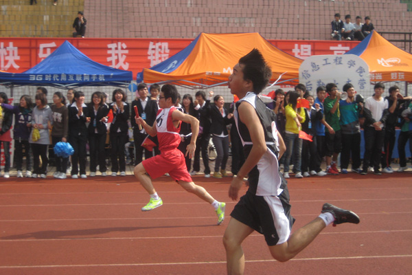 4日上午,运动会开幕式如期举行。信息工程学院的运动健儿们手执黄色彩带,身着红色运动服,迈着矫健的步伐向主席台走去。同学们手工制作的“奥运五环”象征着“更高、更快、更强”的奥运精神,精美装扮的自行车方阵展现了信工学子积极向上、热爱体育运动的良好精神面貌。看台上,拉拉队员们手握彩旗为运动员呐喊助威。后勤大本营里,学生会的同学们早已准备好了各项物资和备用药品。小记者团更是忙于用手中的相机和笔、纸记录精彩的瞬间。