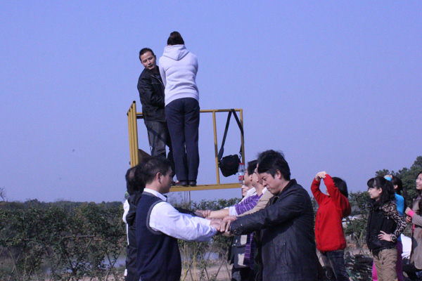随着“请相信我们,放心的倒吧!”的呼唤声,每一名队员都顺利的躺在了团队们用手搭起的“网”中,刹那间,一种难以用言语表达的幸福、安全感瞬间涌上心头。信任他人、热爱集体就是如此的快乐!“信任背摔”的过程,体现的是员工与员工之间的一种相互信任。