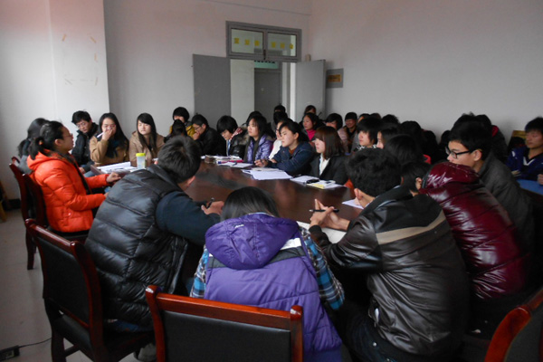 会上,参与此次比赛的学生相互交流,充分讨论,对各自的创业、调研项目提出意见或建议,以完善参赛方案,争取在比赛中取得好的成绩。