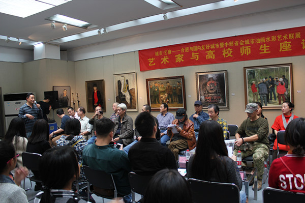 参观后,动漫学院部分师生还参加了随后举行了交流会,与参展艺术家们同堂交流。
