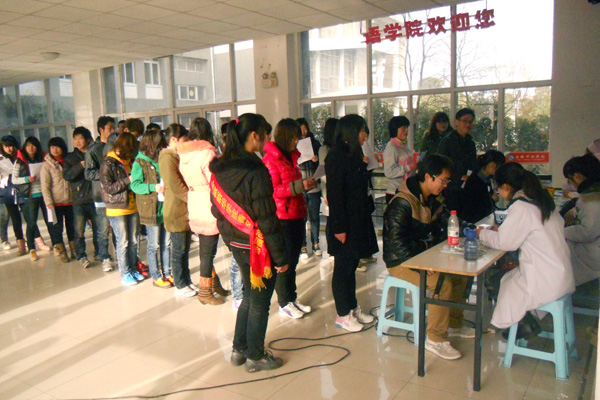 早上八点多,献血车开进校园,同学们赶到位于外国语学院门口的采血点,等候献血的师生排成了长龙。在工作人员和青年志愿者的有序引导下开始献血。整个献血程序分为填写个人资料信息、体检、抽血化验等步骤。药学院团总支学生会的工作人员在现场认真进行各项流程的组织工作,他们为献血同学发放表格,解答问题,维持秩序,每个细节都服务周到,体贴入微。