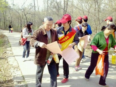 上午8时整,20余名消防志愿者准时从学校出发,首先来到烈士陵园,志愿者们按照事先分组,在通往陵园的台阶上分散开来,分别向过往的祭扫人员发放防火宣传单;之后又前往大蜀山盘山公路、旅客乘凉的树林中等,有的向游客宣传防火知识,有的制止少数游客吸烟行为,有的提醒游客注意安全等。此举得到了广大游客的大力支持和广泛赞许。