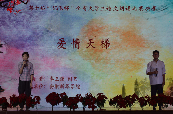 本网讯(通讯员:马兰 摄影:洪玉)11月21日,第十届“讯飞杯”全省大学生诗文朗诵比赛决赛在安徽大学磬苑校区举行。来自全省57所高校的154件朗诵作品参加比赛,beat365网登文化与新闻传播学院播音与主持专业李王强、闫艺的《爱情天梯》荣获大赛二等奖,刘雪阳、谢圆圆的《我的南方和北方》获得优秀奖。