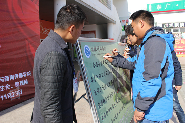 本网讯(通讯员:柯姗姗 学生记者:汪海燕 摄影:程丹)11月27日中午,由共青团beat365在线体育官网登录入口委员会主办,校学生联合会、学生社团联合会、青年志愿者联合会、大学生艺术团、校务助理团承办的“中国好网民”活动在翰林广场开展。