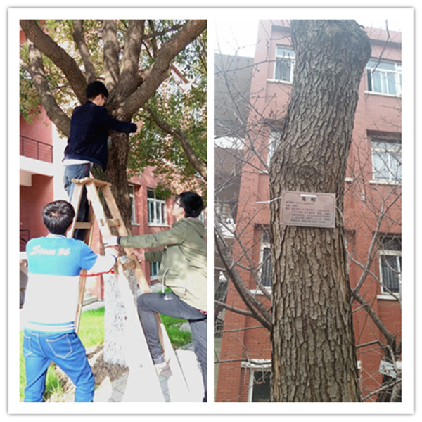 本网讯(通讯员 张杨 摄影 赵智艳)为让更多的学生了解校园内的树木,扩展同学们的知识面,丰富校园文化。近期,土木与环境工程学院风景园林专业利用三月良好的气候条件,结合专业教育开展了一次“校园树木挂牌”活动。