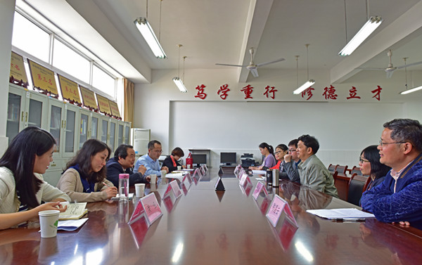 翟荣兵一行受到蚌埠学院文学与教育系的热情接待。蚌埠学院文学与教育系主任程志龙介绍了该系的概况;姚国建教授介绍了蚌埠学院广播电视编导专业的申报、专业基础、专业特色等;实验教师陈昌云介绍了该专业的实验室建设和使用情况;教务秘书张相蓉重点介绍了实践教学的开展以及校外的实习实训情况等。