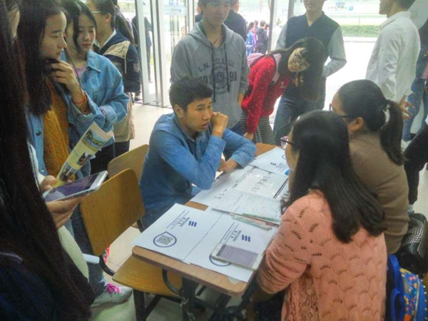 本网讯(通讯员:王婷)10月14日中午,信息工程学院在一楼大厅举办2017届招聘会。合肥君正科技有限公司、上海瑞禾通讯技术有限公司、惠尔浦公司、爱立信合肥分公司等多家企业单位来校招聘,信息工程学院2017届毕业生共有517人,除工作已经确定与外出实习的毕业生,现场约350名同学参加本次招聘会。