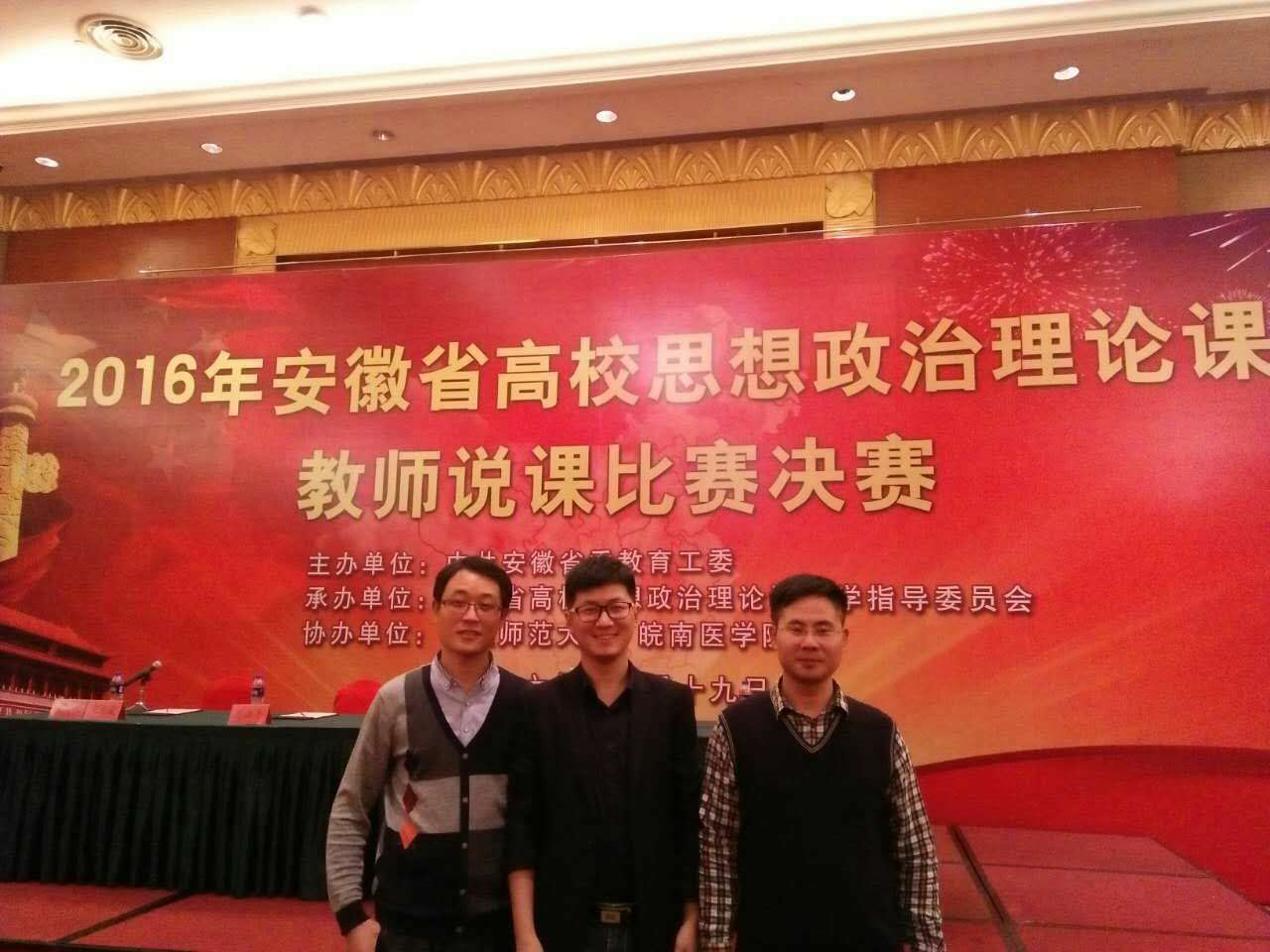 本网讯(通讯员:代长彬)为认真落实中央59号文件关于切实加强高校思政理论课建设的要求,省委教育工委组织开展2016年全省高校思政理论课教师说课比赛活动,比赛分区域比赛、省级决赛2个阶段。1 1月19日,beat365网登思政部教师沈跃龙在安徽省高校思想政治理论课教师培训基地(安徽师范大学)参加决赛,并荣获优秀奖。