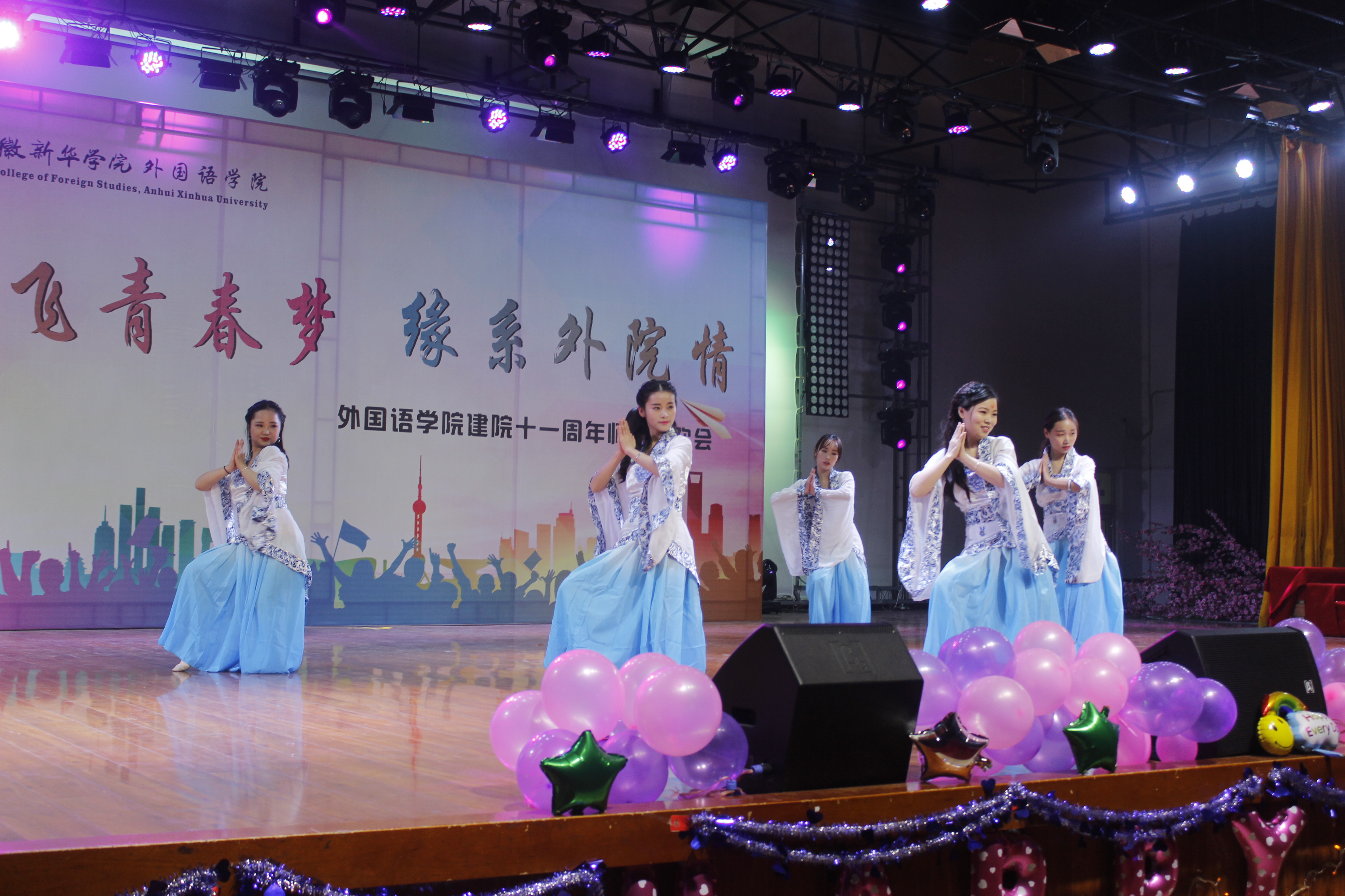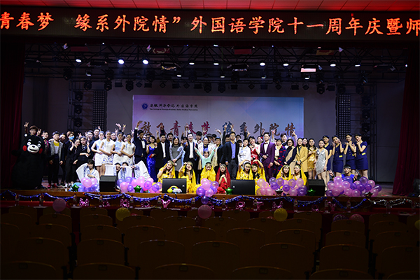 本网讯 (通讯员:万媛媛,摄影:徐叶琴)为庆祝建院11周年,12月5日晚,外国语学院 “放飞青春梦,缘系外院情”11周年暨师生联欢会在校大礼堂举办。外国语学院执行院长邵玲,药学院副院长余立新,科技学院副院长李洁,外国语学院院长助理杨艳霞、周景及外国语学院全体师生、校友代表观看了晚会。