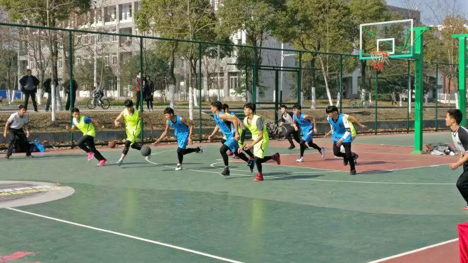 2014级自动化专业代表队和2016级电子信息工程专业代表队展开激烈的角逐。操场四周围满了前来观看比赛的师生,不时传来阵阵欢呼声和呐喊声。半场结束时,双方比分27: 24,比分十分靠近,场上气氛紧张;在全场比赛只剩四分钟时,双方仍保持32:32的局面,势均力敌。时间一分一秒过去了,双方你追我赶,最终比分定格在37:32,2014级自动化专业代表队领先5分赢得本场比赛,夺得本届“和谐杯”篮球赛的冠军。