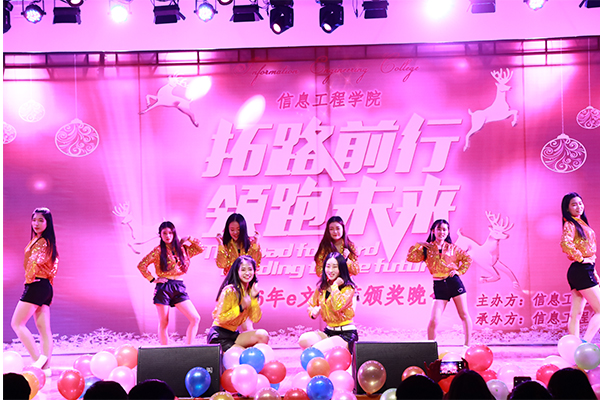 信息工程学院e文化节经历了三年冬春,迎来了崭新的征程,2016年是丰收的一年,各项工作取得了一系列喜人的成绩,颁奖晚会既是学院领导对学院工作的肯定,对发挥榜样力量、传递文化精神有重要作用。