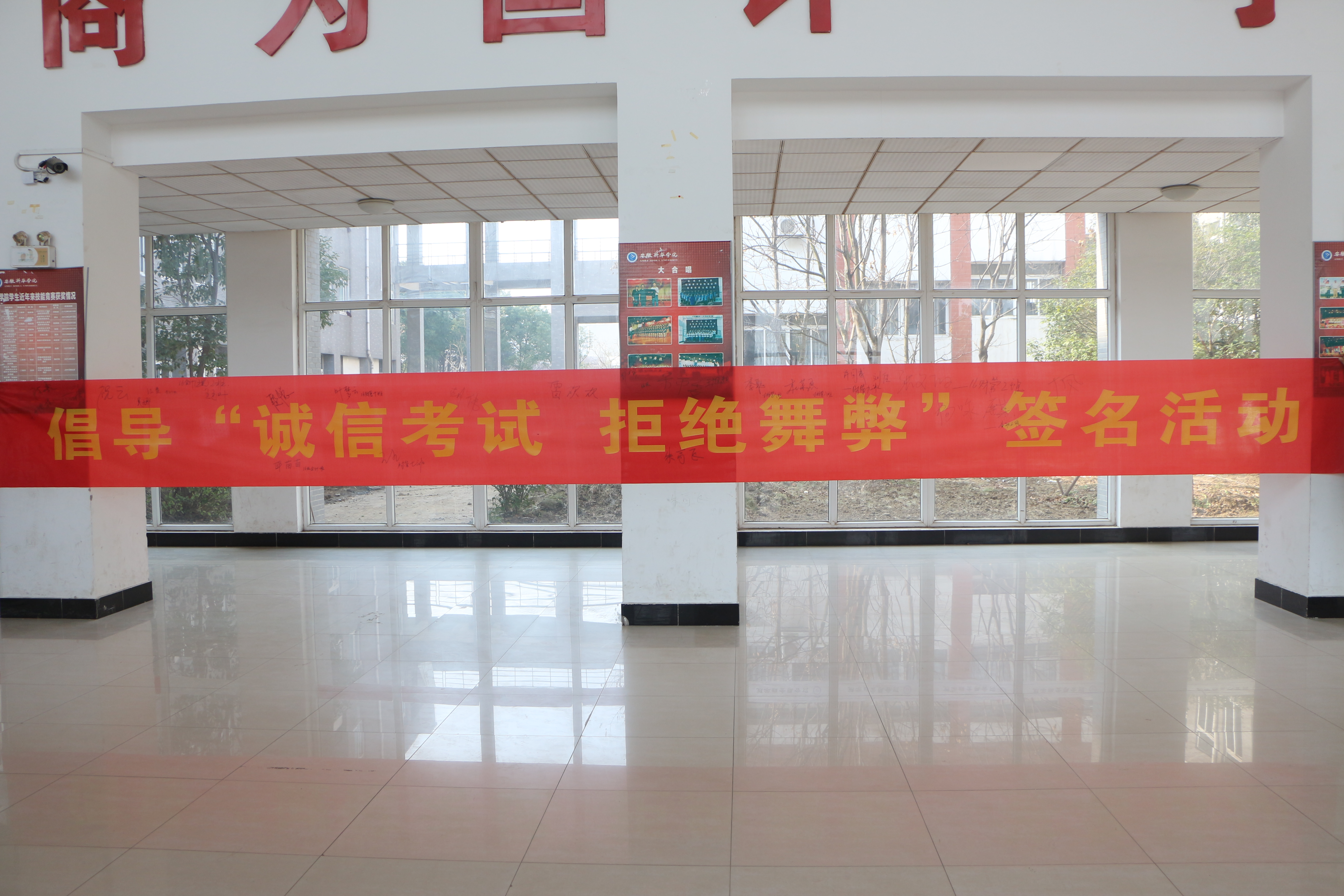 在学生会各个部门齐心协力的准备下,“诚信考试”签名活动一开始,就吸引众多学生来到横幅前,积极地参与到活动中来,一笔一划中展现着他们对诚信考试重要性的认知。