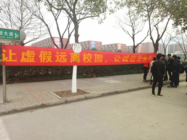 本网讯(通讯员:陈晓芳)为了严肃考风考纪,加强学生的诚信考试教育, 12月19日,电子通信工程学院开展“让虚假远离校园,让诚信常驻心中”诚信考试签字活动,2016级自动化专业100余名学生参加此次活动。