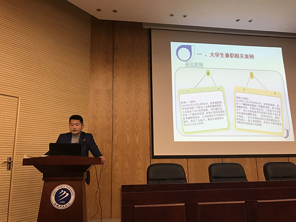 本次培训由保卫处处长助理张保卫进行就业、兼职安全知识培训,学生处王强亚进行春季心理安全培训,学生处处长汪俊东就安全重点工作进行强调和布置。