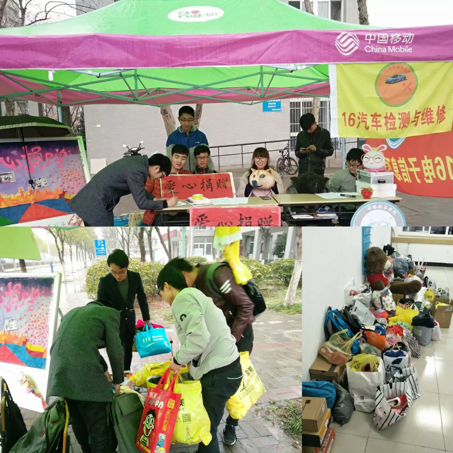 为加强的学生社会责任感,弘扬中华民族勤俭节约的传统美德,3月23日至28日,电子通信工程学院电信、电科、汽检团支部联合举办了爱心捐赠活动,活动参与人数众多,收到衣物、鞋子、书籍、玩具、现金等捐赠物,此项活动与青年志愿者联合会合办,收到的捐赠物将用于各项公益活动。
