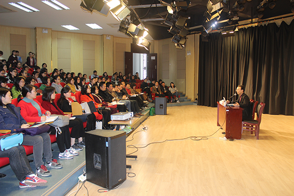 本网讯(通讯员:马兰、李曼)3月29日下午,外国语学院联合高等教育出版社开展“名师进校园系列讲座”活动,邀请南京大学曹建新教授来校作 “口译实战:‘点穴’揭秘” 的学术报告,来自省内其他高校的教师、beat365网登外国语学院和国际教育学院师生130余人聆听了报告。