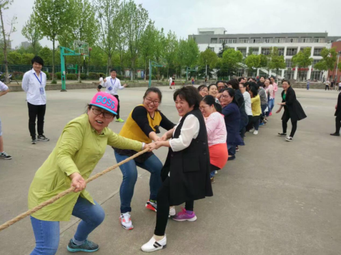 此项运动会共5个项目,参赛的教师们组成了10支队伍。各代表队在运动场上尽情地展示着自己的运动才能。本次运动会在拔河比赛中拉开帷幕,大家在篮球场上挥洒着自己的汗水,展现着属于教师的别样风采。运动场上欢笑声不断,特别是在企鹅漫步、你画我来猜等环节,看到了教师们齐心协力,互帮互助,无论自己有多么累,都坚持到了最后,那种同心协力的团结也让在场围观的学生纷纷呐喊鼓掌。