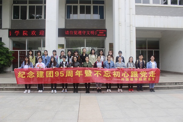 本网讯(通讯员:万媛媛)为庆祝中国共产主义青年团成立95周年、五四运动98周年,深入学习习近平总书记系列重要讲话精神,推进共青团改革,切实增强团员的先进性,5月4日中午,外国语学院团总支举行纪念建团95周年、五四98周年暨“不忘初心跟党走”主题团日教育活动。外国语学院团总支书记万媛媛、24名非毕业班团支书参与此次活动。