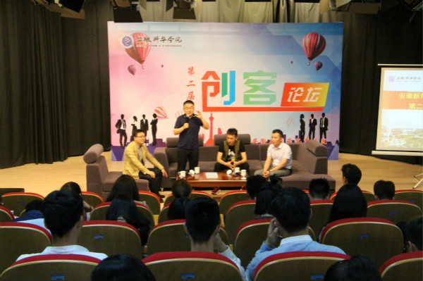 本网讯(通讯员:孙珊珊)为进一步营造良好的创新创业氛围,推进创新创业教育,5月5日,商学院第二届“创客论坛”在新闻演播厅举行,此活动邀请了加多宝集团销售总经理许良传、营销总监吴浩,以及安徽猿人装饰总经理刘士才、中国人寿合肥一支部门经理苏斌、安徽致尚服饰总经理刘锦等优秀创业校友出席,商学院全体行政人员、学生处相关工作人员及120余名学生代表参加了此次活动。此次活动包括主题报告和创客访谈两项内容。