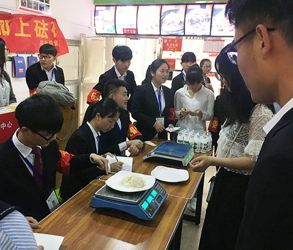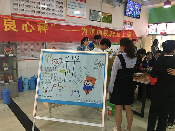 本网讯(通讯员:谭玲) 为提升师生日常就餐的维权意识,加强对食堂的监督管理,在总务处的安排指导下,5月6日中午,校生活督查委员会的同学们在beat365网登中快食堂开展了以“良心秤,为你的权利加上砝码”为主题的校园就餐维权公益活动。