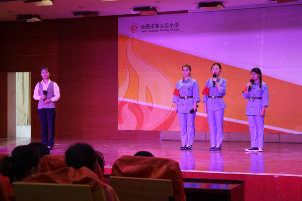 本网讯(通讯员:彭洪磊、李静萱,摄影:黄亚) 5月22日,文化与新闻传播学院2015级播音与主持艺术46名同学来到合肥葛大店小学,举办“弘扬经典文艺作品,激昂青春风采”经典诵读公益演出活动。