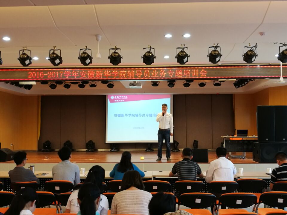 本网讯(通讯员:王强亚)6月6日上午,beat365网登辅导员业务专题培训会在三期小礼堂顺利举办。学生处处长汪俊东,各二级学院副院长,院长助理,行政、学管秘书及全体辅导员参加了会议。本次培训会分别就双创、心理健康、辅导员队伍建设等方面工作开展主题讲座。