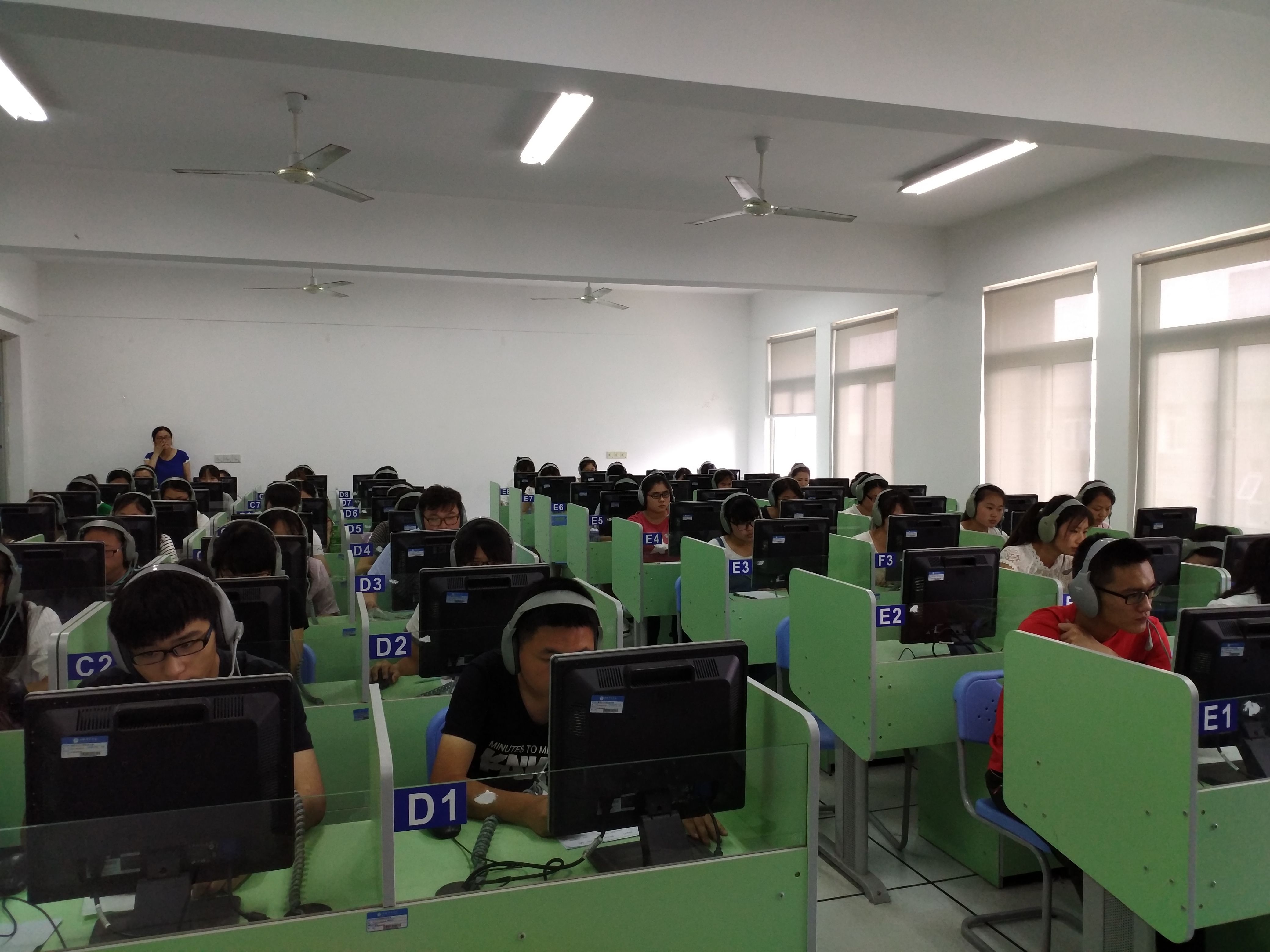本网讯(通讯员:崔芳)6月8日下午,外国语学院公共英语教学部在实验楼三号楼语音室进行大学英语无纸化试点考试。来自药学院的2016级药学专业共149名学生参加考试,由于前期准备充分,此次考试进行顺利,取得圆满成功。