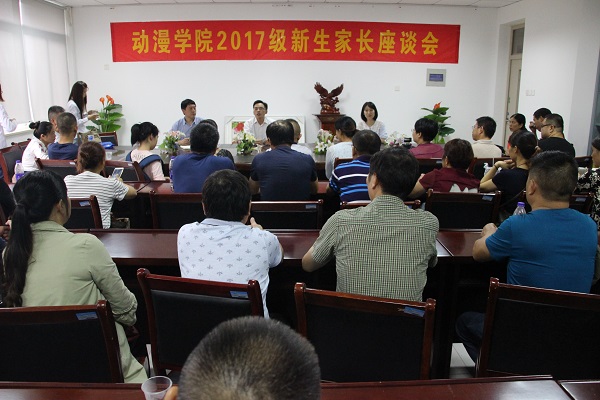 本网讯(通讯员:郑妮) 9月6日下午,动漫学院在2017级新生报到之日召开新生家长代表座谈会。动漫学院副院长许存福、朱诵贵,院长助理刘刚,行政秘书郑妮,学管秘书汪明天以及2017级新生家长代表参加了座谈会。座谈会院长助理刘刚主持。