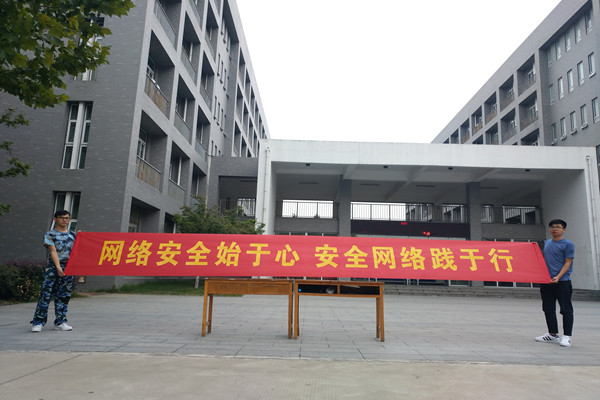 同时,各级学生组织也积极行动起来,团总支、学生会举行了网络安全宣传的签字仪式。虽然天空下着绵绵细雨,但是依旧抵挡不住同学们参加活动的积极性。学生会同学为大家讲解网络安全知识,普及相关法律法规,并现场发放了宣传单页和调查问卷。学生们在认真学习了相关知识后,庄重地在“网络安全始于心,安全网络践于行”的横幅上签下了自己的名字,以此承诺文明上网、安全用网。此外,相关学生组织还采用海报等形式,进行网络安全知识宣传,并在校内悬挂宣传横幅,提醒全体师生重视网络安全。