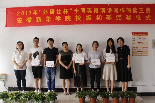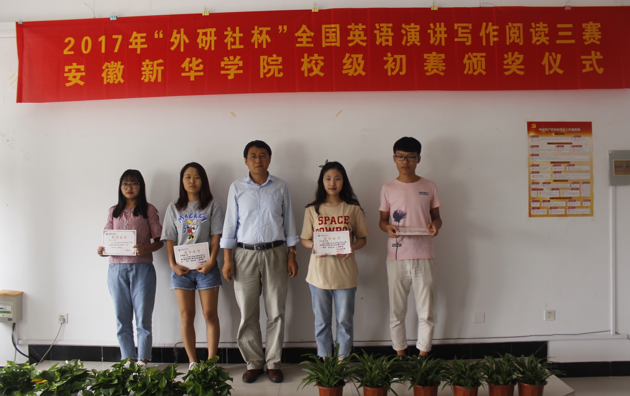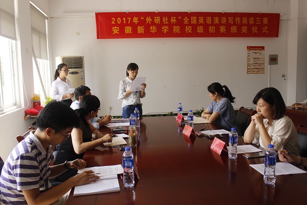 本网讯(通讯员:柳飏)为鼓励学生将专业知识运用到实践中,激发学生积极参加各类学科竞赛,近日,外国语学院举办2017年“外研社杯”全国英语演讲、写作及阅读三赛beat365在线体育官网登录入口校级初赛颁奖仪式。外国语学院执行院长邵玲、教学副院长王志宏、行政副院长周景及相关教师出席了颁奖仪式。
