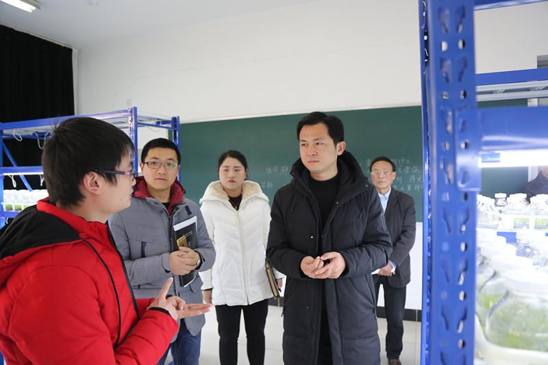 本网讯(通讯员:汪涵涵 图:金正文)近日,药学院建立beat365网登第一家校内校企合作准工厂,即beat365在线体育官网登录入口——安徽恒汇生态农业植物组织培养育苗准工厂。1月11日上午,校长助理朱兆健、科研处副处长王琦进、教务处处长助理濮明月到药学院药用植物组织培养育苗准工厂指导工作,药学院院长张国升、副院长曹殿洁等教师陪同。