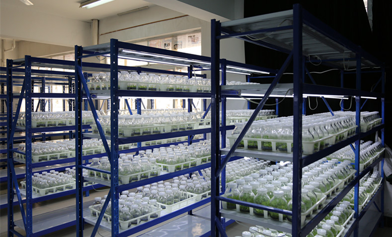 张国升介绍了药学院药用植物组织培养育苗准工厂目前发展情况和未来建设规划。他说药用植物组织细胞培养实验室已经正式投入使用,对白芨、红豆杉、黄豆杉、石斛等经济价值较大的药用植物进行组织培养实验工作,第一批石斛、红豆杉、白芨幼苗已经培育成功,长势良好,预计于2018年5月可移植至野外种植,后期将进一步批量培育,并上市销售,实现经济价值,带动地方经济发展。