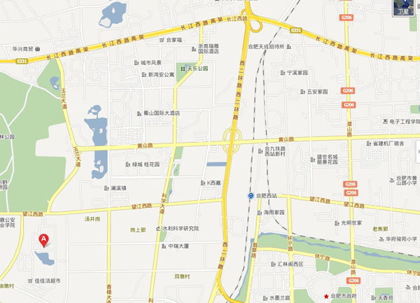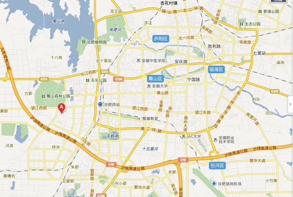 2、沿合淮阜高速行至合肥市“蜀山”道口,沿合六路向东行至长江西路,沿长江西路向东行驶至玉兰大道交叉口,沿玉兰大道向南行驶至望江西路到即可