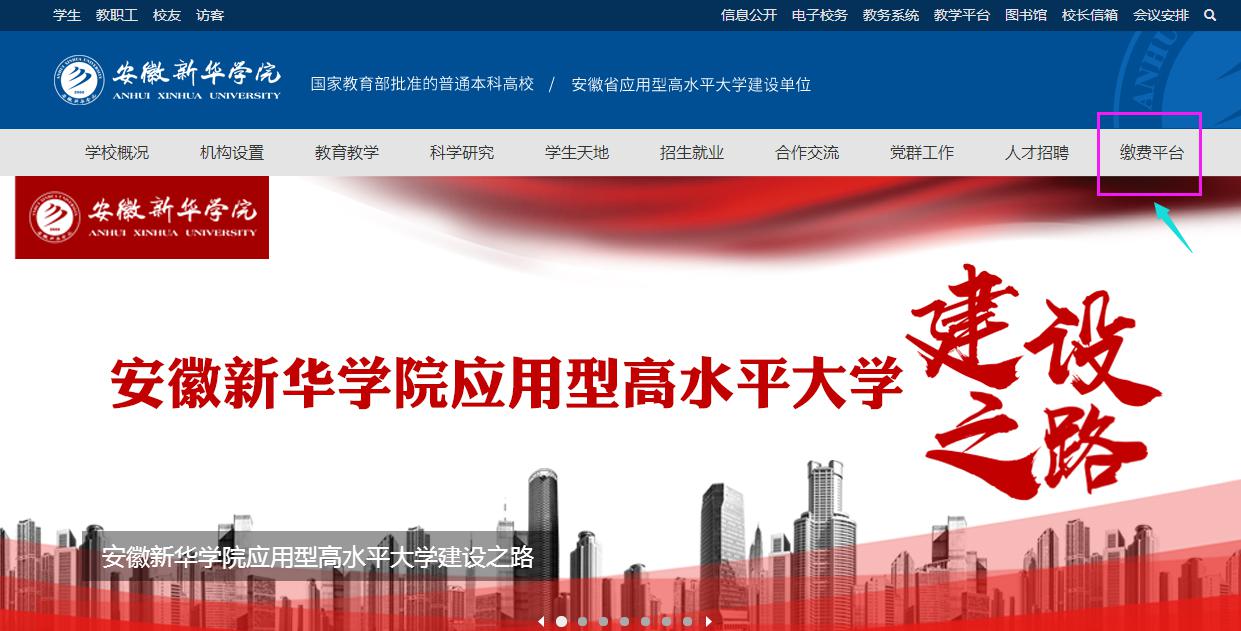 beat365在线体育官网登录入口坐落于包公故里、科教基地、历史名城安徽省省会合肥,地处合肥市国家高新技术产业开发区大蜀山森林公园南麓,是经教育部批准,拥有学士学位授予权的省属普通本科高校。学校占地面积1500余亩,全日制本专科在校生共计24000余人,教职员工1000余人。考虑到资金安全及疫情管控需要,beat365网登已开通网上自助缴费方式。目前支持3种缴费方式:支付宝、微信、农业银行卡。其中:支付宝和微信绑定的任意银行的借记卡、信用卡均可缴纳(不限银行)。