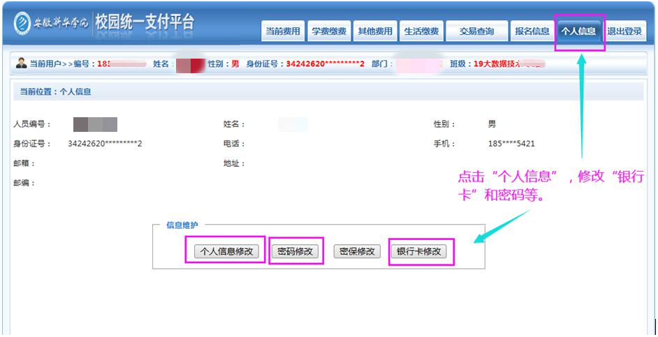 2、 电脑端个人信息维护操作步骤: