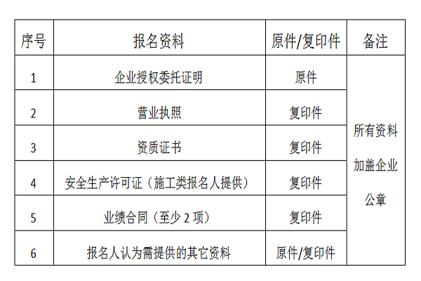 4)电力施工单位:报名人自2015年1月1日至今至少具备2项单项合同金额不低于 500万元的类似公共建筑业绩(以合同签订为准);