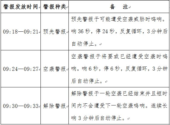 与“9.18”防空袭警报试鸣同步,旨在让广大师生充分认识到人民防空的重要意义,学会识别防空袭警报信号,掌握防空防灾的基本技能,树立居安思危、常备不懈的战备观念。现将警报发放事宜具体通知如下: