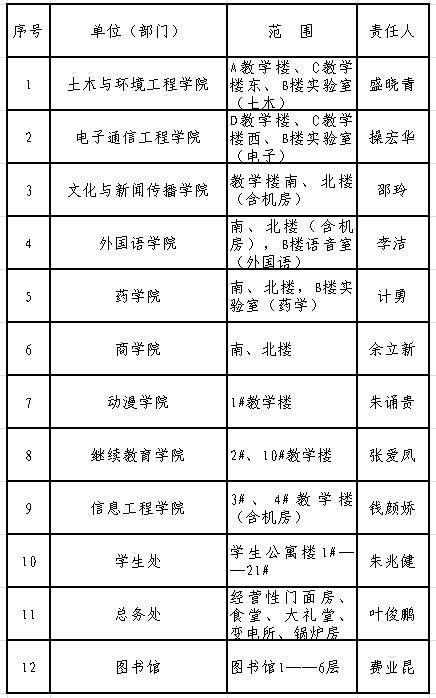 1、此次排查活动各二级学院行政副院长及相关部门(总务处、学生处、图书馆)的负责人是第一责任人,要严格按照统一部署,落实责任,组织开展排查工作。