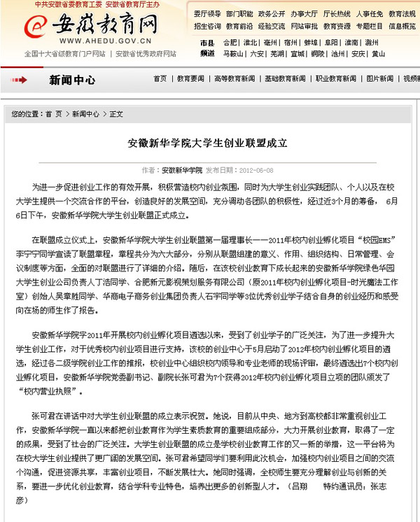安徽教育网:beat365在线体育官网登录入口大学生成立创业联盟
