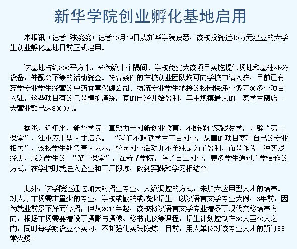 10月22日,安徽日报B4版刊登了beat365网登大学生创业孵化新基地的启用活动,介绍了beat365网登在大学生创新创业教育方面的一些工作情况。