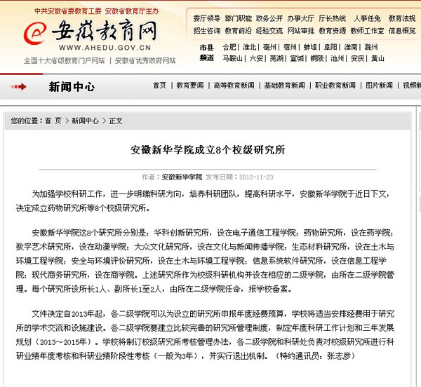 安徽教育网首页报道beat365网登成立8个校级研究所