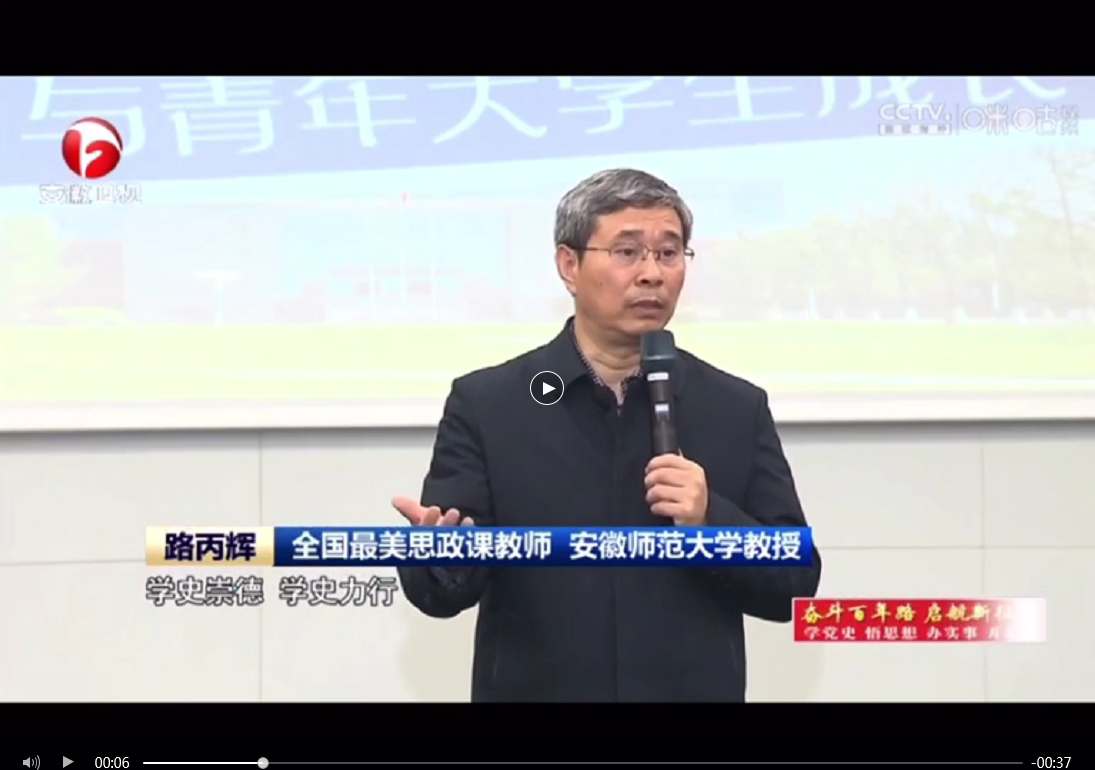 “全国最美思政课教师”来beat365网登开展主题讲座获得了《安徽新闻联播》等媒体的关注与报道。“希望把党史的学习以润物无声的方式让学生感知它。知道我们从哪里来,将来向哪里去,这样才能够承担得起我们中华民族伟大复兴的重任。”路丙辉在采访中提到。