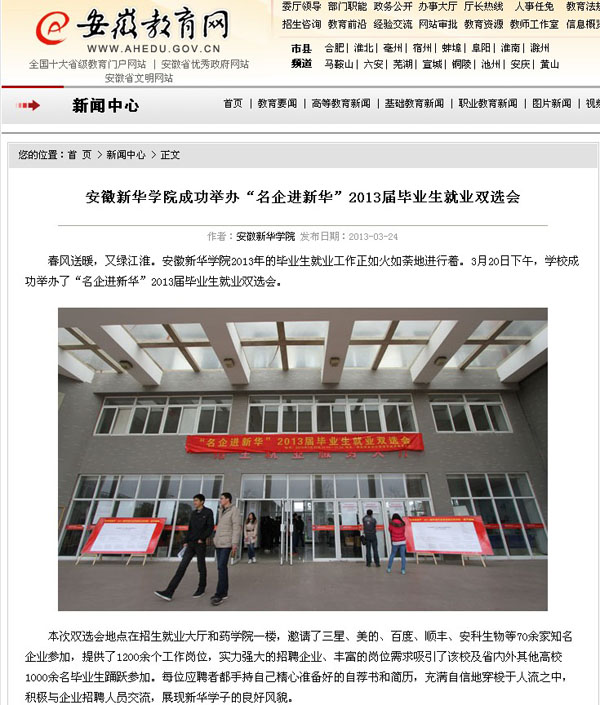 安徽教育网首页报道beat365网登成功举办就业双选会