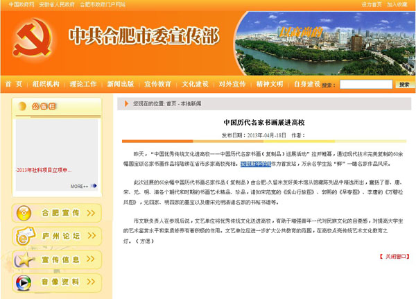 中共合肥市委宣传部网:中国历代名家书画展进高校