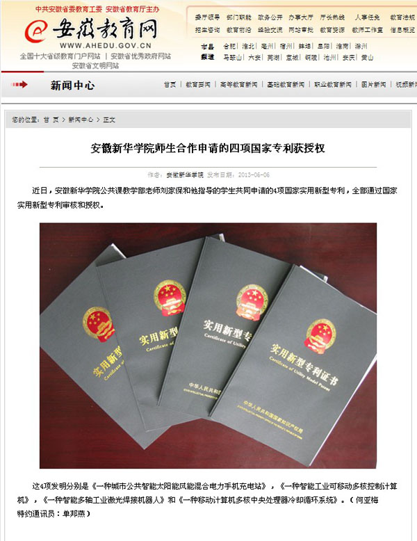 安徽教育网:beat365在线体育官网登录入口四项国家专利获授权