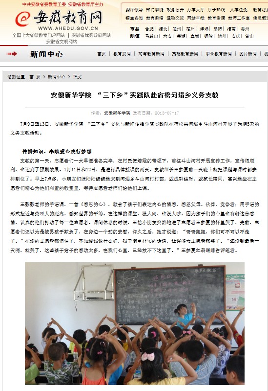 安徽教育网:beat365在线体育官网登录入口 “三下乡”实践队赴宿松河塌乡义务支教