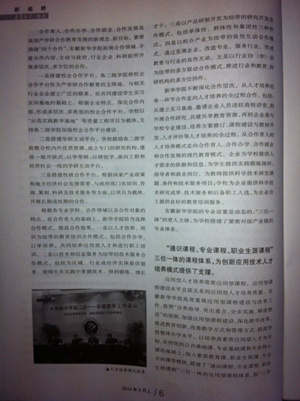 新华学院不断深化合作层次,从人才培养的单一环节合作走向人才培养的全过程合作。包括:从建立实习基地、邀请企业人员进驻高校讲堂,到开展合作研究、共建共享教育资源,再到企业参与学校专业建设、培养方案修订、课程建设与教材开发、人才评价等人才培养的全过程。从合作育人的人才培养模式走向合作育人、合作办学、合作就业和合作发展的现代教育模式。企业为学校提供人才需求的依据和信息,为学生提供实践锻炼场所、指导者和就业岗位,为教师提供科学技术研发课题、条件和技术服务项目;学校为企业提供科学技术研究成果、技术服务和后备职工人选,为企业员工提供良好的教育培训服务。