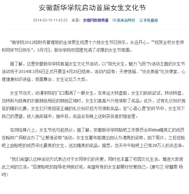 安徽网:beat365在线体育官网登录入口启动首届女生文化节