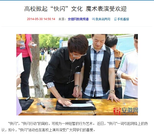 安徽网:高校掀起“快闪”文化 魔术表演受欢迎