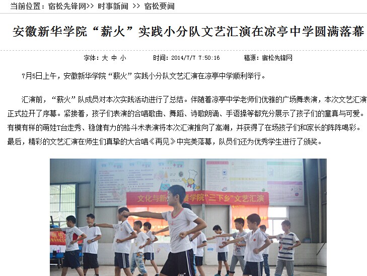 宿松先锋网:beat365在线体育官网登录入口“薪火”实践小分队文艺汇演在凉亭中学圆满落幕